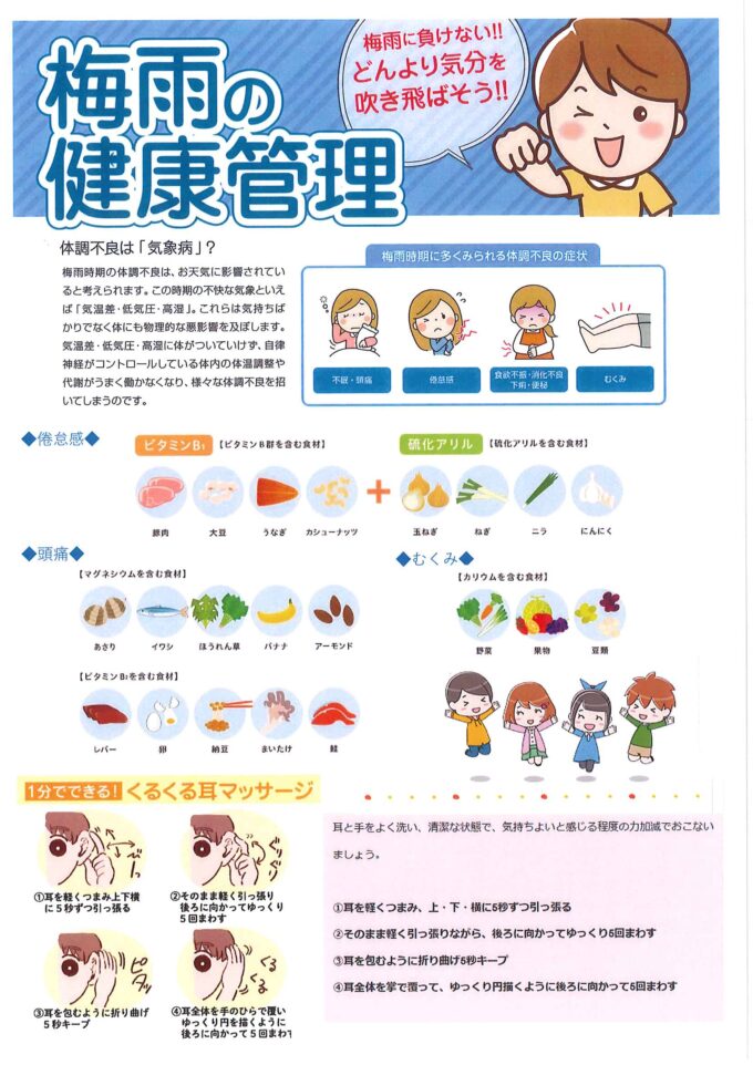 梅雨の健康管理 2022/06/27 暮らしお役立ち情報お知らせ 毎年のこの梅雨時期、『気分はどんより、体が疲れやすい』なんてお悩みを抱えてる人も少なくないのでは…? 梅雨はおよそ1か月半にわたる長期戦! 心と体の健康管理を行って元気に乗り切りましょう。 この記事をシェアする くらしお役立ち情報...『花園南モデルハウス』を売却いたしました...